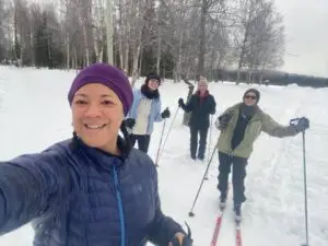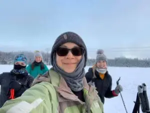 When spring came and the snow started to melt, we talked about hiking together over the summer (didn’t happen), and promised to meet up next winter. Winter is finally upon us again, and we’ve started the text chats to meet up and ski. We’ve had one meetup so far, and cancelled a second (below zero temperature have been a deterrent), but we all agree that we are looking forward to a winter of camaraderie and skiing. We are committed to welcoming other newcomers, slowly improving, and encouraging each other along the way. This support allow us to step outside of our comfort zones and be willing to try new things, even if it means being bad at it long enough to get good at it (or at least get better).