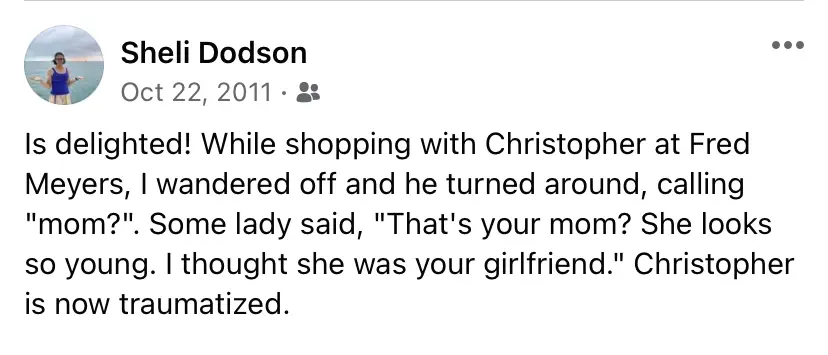 My son and I both remember when this happened, and while he doesn’t laugh about it like I do, I cherish this memory and the quiet evening that followed. Â It wasn’t very often that it was just the two of us hanging out together during his teenage years.Â