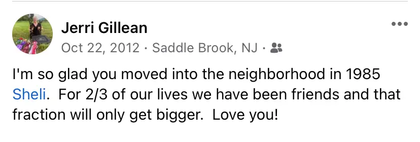 1985! As of the date of this post, that was 37 years ago. Â Jerri has been a friend for 75% of my life, and, like she said, that fraction will only get bigger!