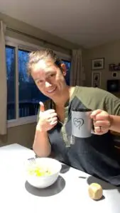 She also encouraged me to exercise. Each morning, the three of us would rise at 5:00 a.m., and Mikayla would lead us through some gentle stretches, followed by an exercise regimen customized by Mikayla. Â Andrew did the majority of the cooking for their duration of their stay- and everything was healthy, nutritious and delicious, including desserts.