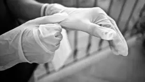 White latex gloves.