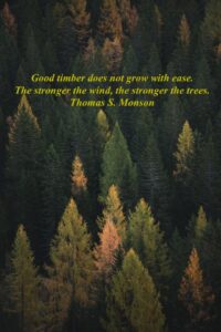 Eventually, they realized it was the lack of wind causing the trees to collapse. Stress on the trees was necessary to keep them healthy and growing. With no wind– no adversity, no stress placed on the trees, their roots were not able to grow deeper and stronger to support the trees’ weight as it grew. It was in the struggle that they grew stronger.