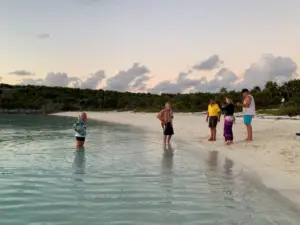 However, sundowners on the beach did not go quite the way we had planned. We have spent most of the time anchored far enough offshore to avoid the bugs, and the mid-day heat tends to keep the mosquitos and no-see-ums at bay even when we were onshore. Consequently, none of us expecting to become instant snack food for the bugs as soon as we landed on the beach. I hadn’t put on any bug spray, so the sundown was accompanied by the constant sound of me slapping my arms and legs, and wading out in the water, trying to partially submerge my body for protection from the bugs. I wasn’t the only one being eaten alive, so it made our time there brief, but we enjoyed the sunset and quiet conversation.