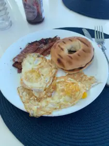 When I woke, I spent the morning working on my The Bait of Satan workbook. I know I have said it before, but this book is INTENSE. The amount of self-reflection required is staggering, and while I am a huge advocate for personal growth, this much personal growth is just plain HARD. Sometimes the hardest thing to do is to look in the mirror and face the not-so-flattering behaviors and mindsets I have. When I finally emerged, having brushed my teeth, and pulled my hair into a sloppy French braid, Scott was the only one on board. Teri and Paul had finally succumbed to Bry & Stu’s invitation to join them for a morning coffee. Scott offered to make breakfast for us both, and I savored a leisurely breakfast of a toasted bagel with eggs and bacon while we talked quietly.