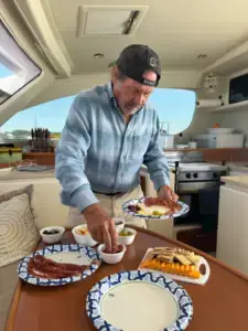 Sleep was a noisy affair- the wind and waves had the boat tossing to and fro, but nothing too outlandish– for me it was like the warm-up to your favorite roller coaster before it makes that first headlong dive. Nonetheless, I slept lighter than normal and pulled my comforter over me for the first time since getting on board. (I mean, yes, I could have closed my hatch, but I revel in the fresh air at night (and there’s a screen to keep bugs out!)).
