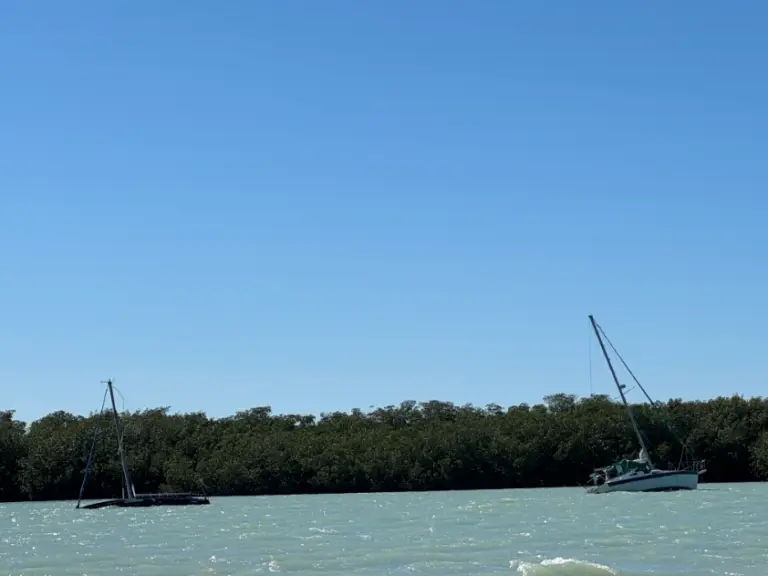 I did point out to Paul that he has a habit of anchoring near sunken boats… there are TWO sunken boats behind us here in Islamorada, and when we were in Key West back in 2022, we kept track of where Kya Anne was anchored by looking for the mast of another nearby sunken boat as a landmark.