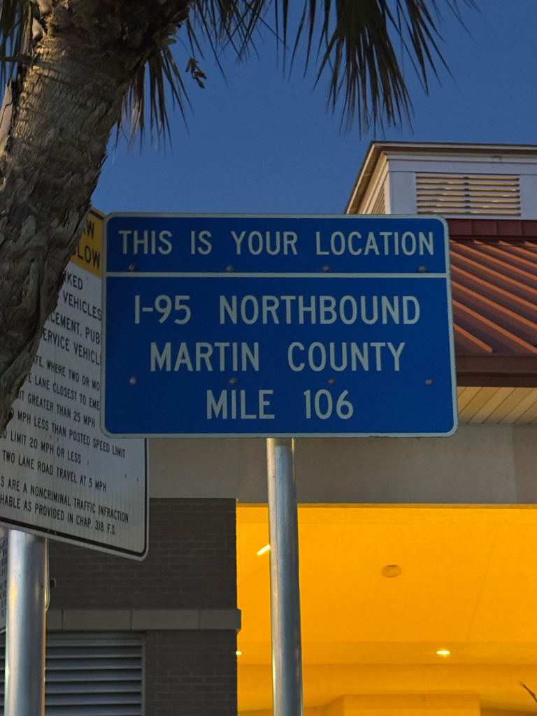 I’m heading back to Fort Pierce, and while its only a short drive from here, I wanted one more night of solitude, so I stopped early and overnight at the Martin County Rest Area (NB, mile 106)