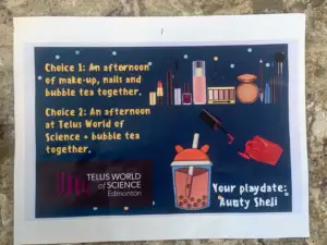 Fortunately, A. exited the womb with the same fervor with which she tries to run the household/world, and she opted for the alternate choice of an afternoon at TWOSE (akaTelus World of Science – Edmonton). 😅. I was relieved, and had made a plan to spend a few hours there Sunday morning.