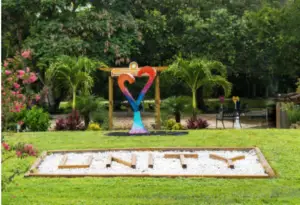 With no further mishaps, I decided I still had time and took a slightly circuitous route, diverting south to Punta Gorda, then north again to stop at the Unity of Venice for a labyrinth walk. I’ll talk more about that experience in an upcoming labyrinth lesson, but let me just say that they had a BEAUTIFUL outdoor space that features the Twelve Powers Prayer Garden, the labyrinth, a gazebo, a fire-pit and an intimate outdoor chapel.