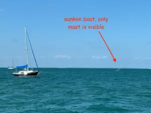 Though we fared well in the windstorm, others were not so fortunate. Less than 100 yards north of us, Paul pointed out a boat that had sunk in the night. We both recalled a couple leaving the monohull together on a yellow and black jet ski earlier in the evening; we hadn’t seen them return. We had both watched the woman working diligently on the boat all day- cleaning and doing laundry, so I can only imagine her heartbreak when she learned it was lost.