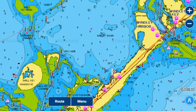 After that experience, he had me navigate and man the helm through Cotton Key Basin, which tested my nerves. It was another episode of me playing Frogger as I dodged crab pots. It was reminiscent of me running the boat on our trip from Key West to the Dry Tortugas—there were crab pots with buoys everywhere, and this time, there were a fair number of buoys in the channels (which is not allowed, but seems to go unpunished).